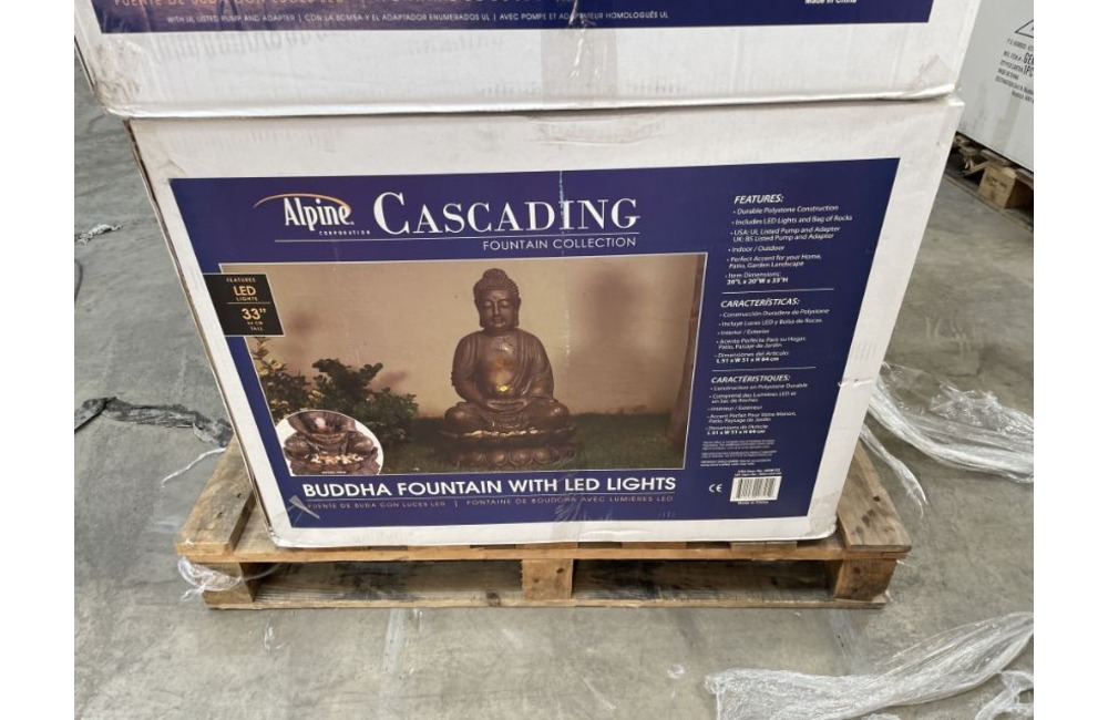 BRAND NEW PREMIUM BUDDHA WATER FEATURES IN VARIOUS COLOURS SOLD IN TRADE AND INDIVIDUAL LOTS. DELIVERY AVAILABLE