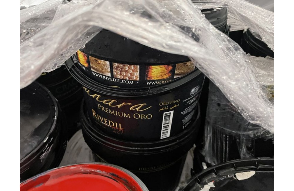 8 PALLETS OF ASSORTED LARGE TUBS OF PAINT AND PAINTING FLUID IN VARIOUS SHADES