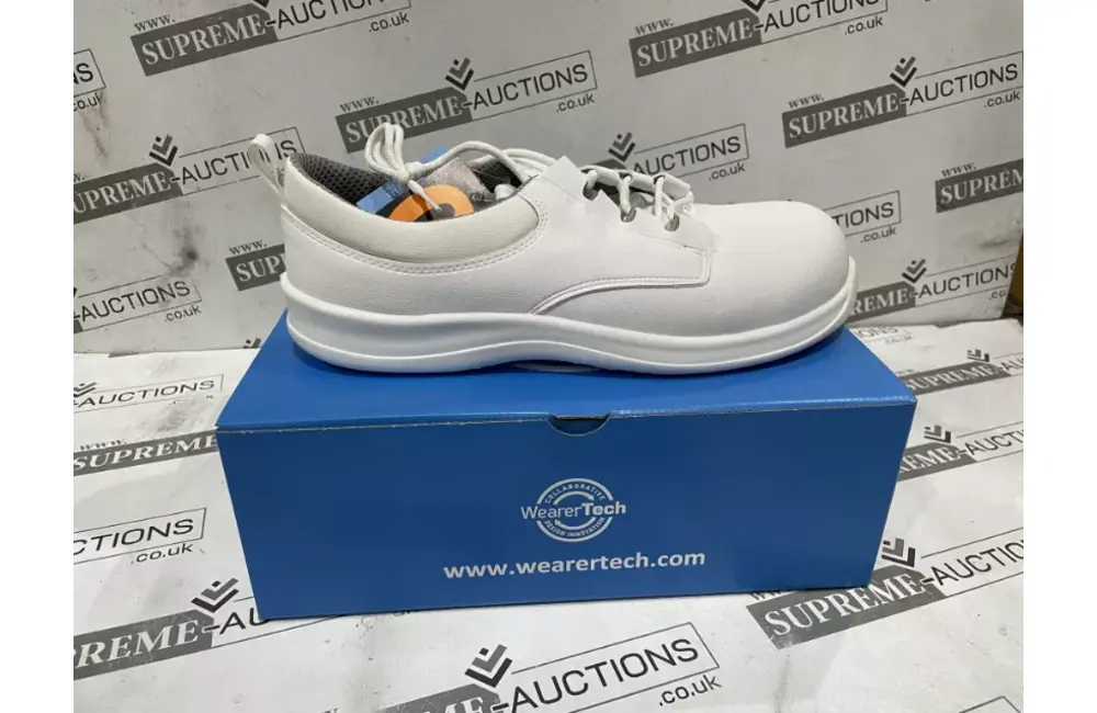BRAND NEW MODERN TECHNOLOGY WEARTECH SAFETY SHOES IN VARIOUS DESIGNS AND SIZES. SOLD IN PALLET AND TRADE LOTS
